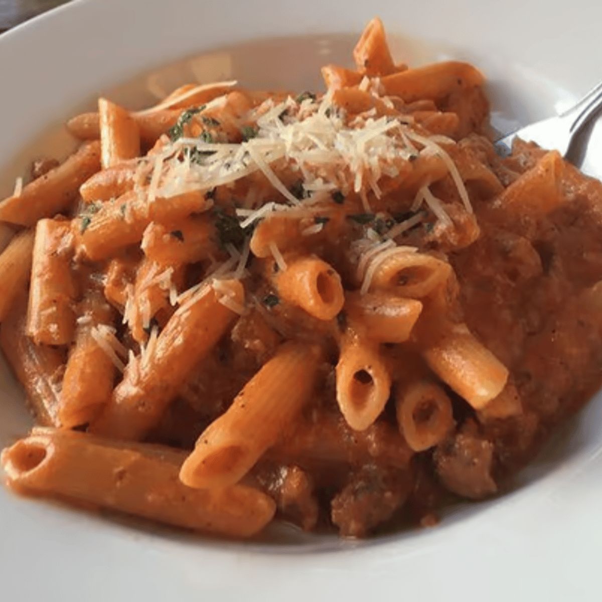 ~ abituale penne tossed with spicy italian sausage in a parmesan & roasted garlic tomato cream sauce 26