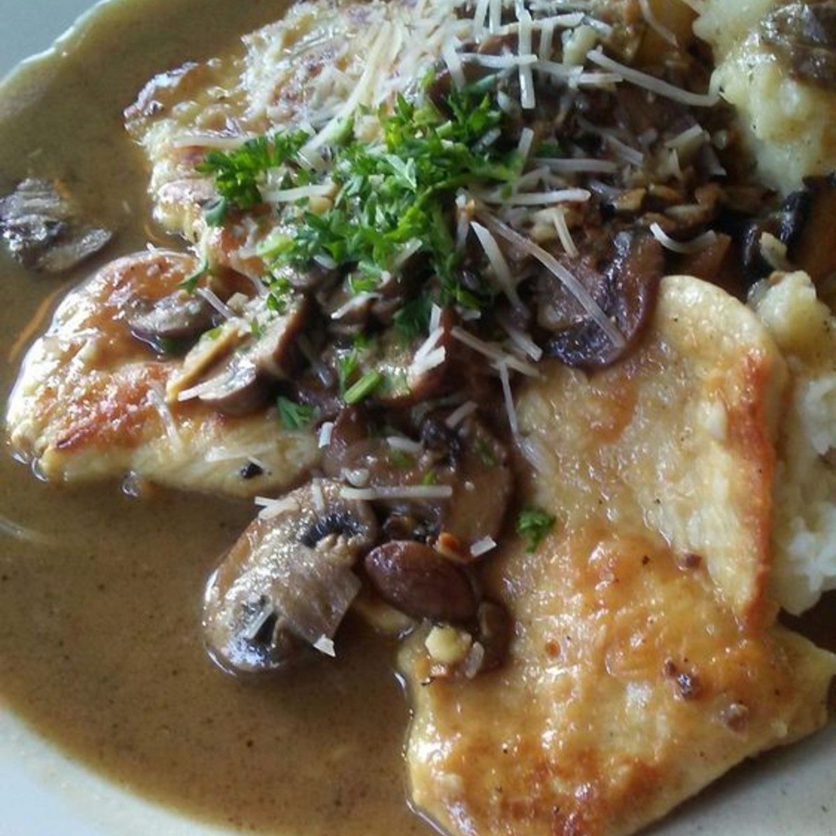 ~ pollo marsala chicken medallions sautéed with mushrooms in a marsala wine sauce, served with mashed potatoes 30