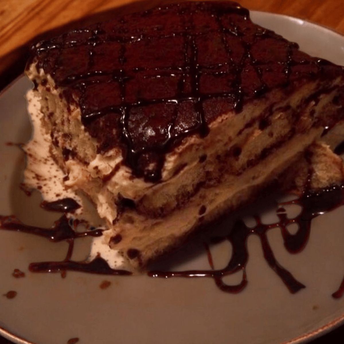 ~ tiramisu espresso dipped ladyfingers layered with mascarpone and dutch cocoa 11 v